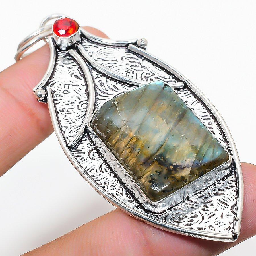 Лабрадорит, Гранат 925 Стерлинговое Серебро Ювелирная Подвеска 3,03" W9g62
