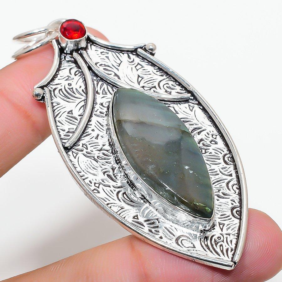 Лабрадорит, Гранат Серебро 925 пробы Ювелирная подвеска 2,96"