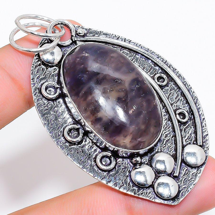 Солнечный камень в иолите Ручная работа Серебро 925 пробы Подарочная подвеска 2,64"