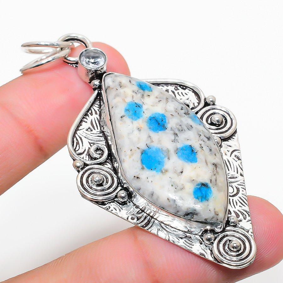 Кулон-подвеска из серебра 925 пробы с К2 Азуритом и Белым Топазом 2,76"