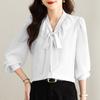 Французская мода, шифоновая рубашка с длинными рукавами и оборками, женская весенняя новая рубашка Streamer, элегантный топ в иностранном стиле
