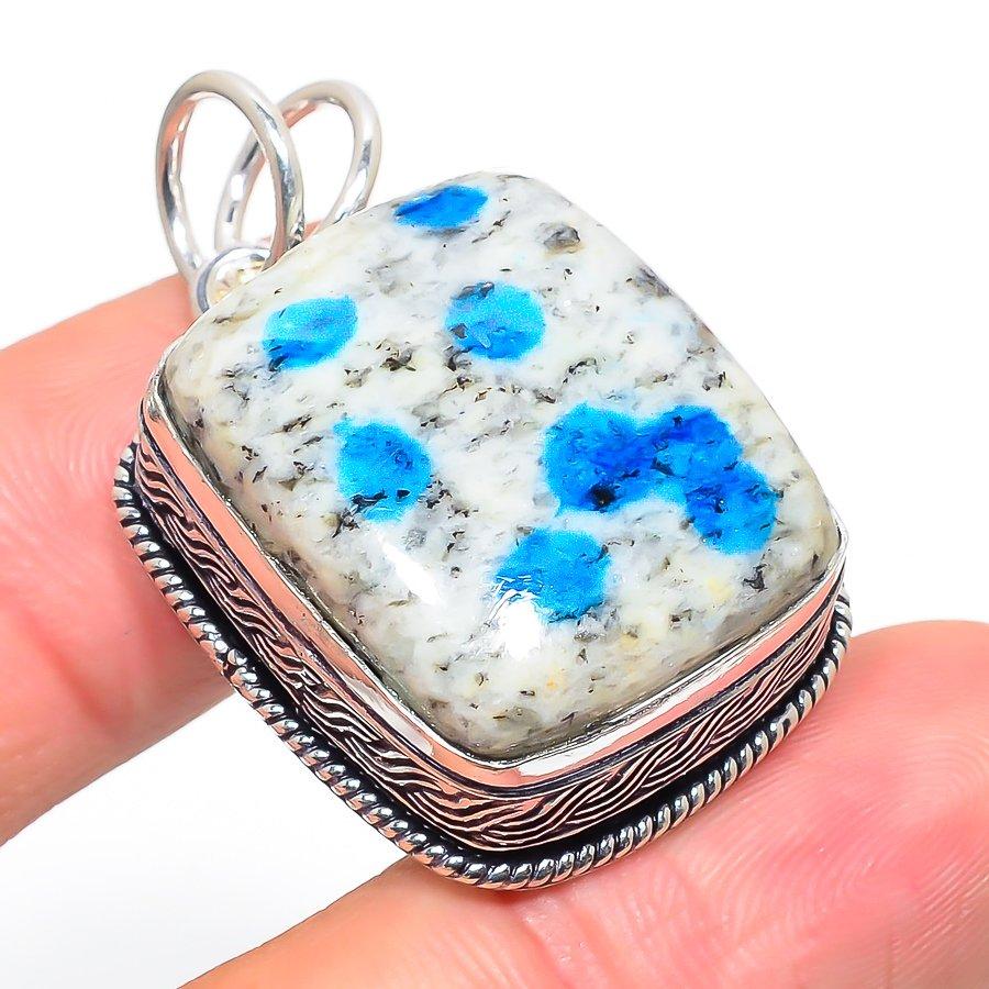 Кулон ручной работы из стерлингового серебра 925 пробы с К2 Азуритом 1,65"