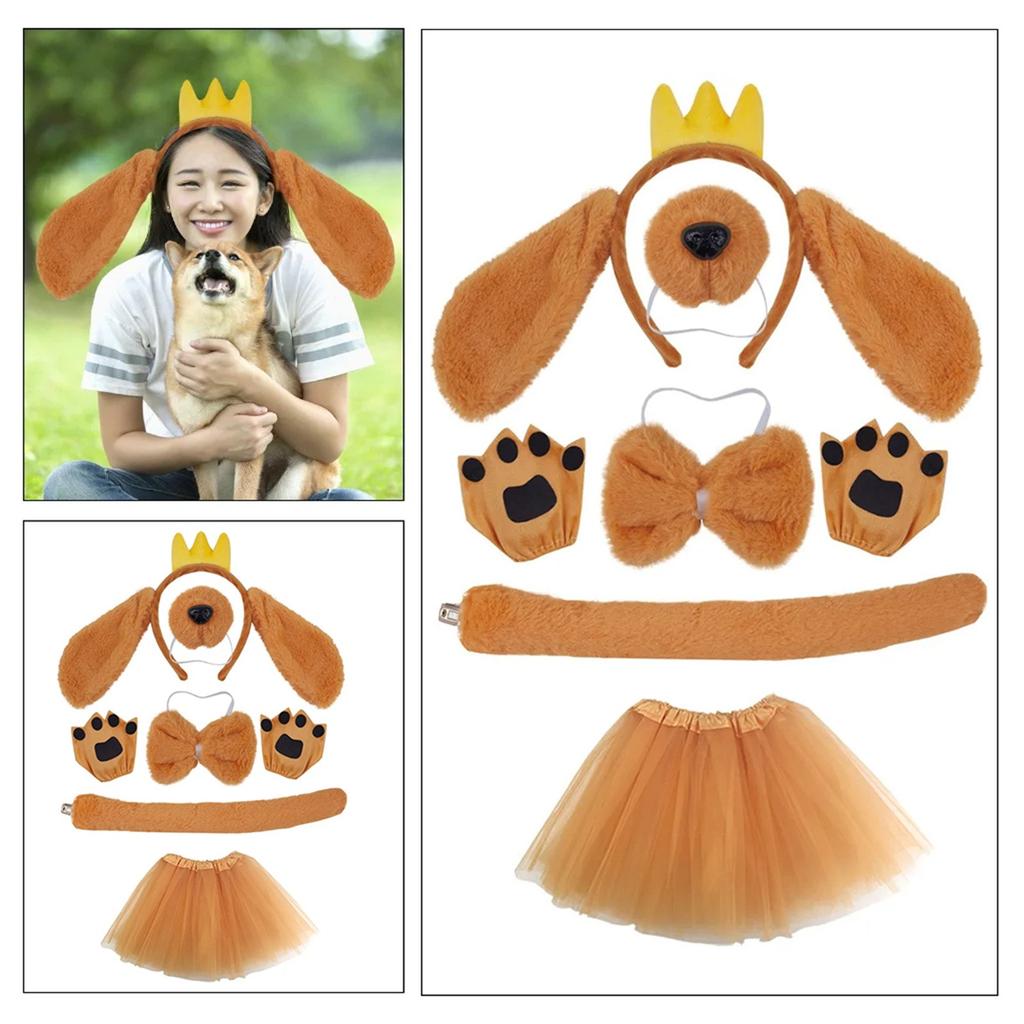 Комплект костюмов для собак, включающий повязку на голову с собачьими ушками, нос, галстук-бабочку, юбку, хвост и перчатки для детей, товары для косплея на будние дни и вечеринки
