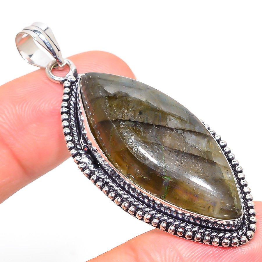 Лабрадорит Ручная работа 925 Стерлинговое серебро Ювелирная подвеска 2,36"
