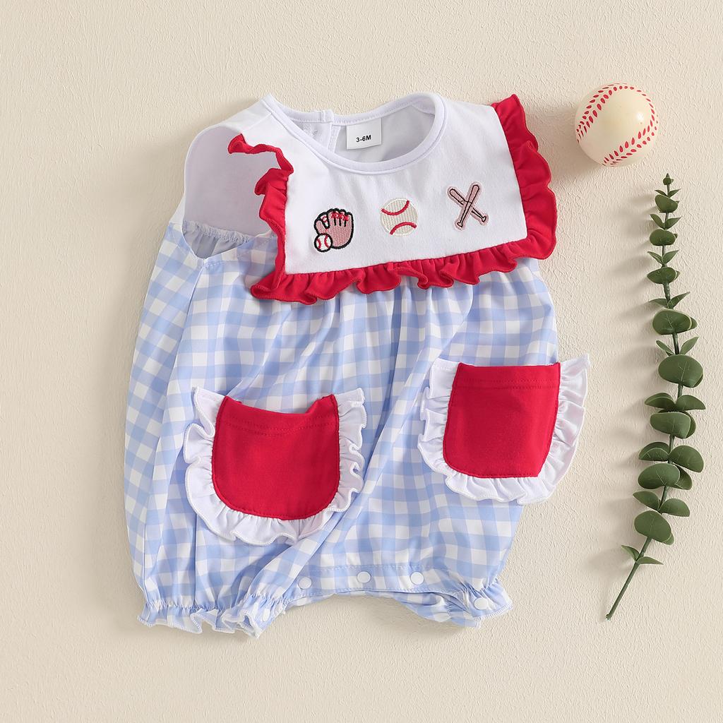 Летний комбинезон для мальчиков и девочек с двумя карманами, круглым вырезом, без рукавов, с принтом бейсбольных элементов, милый модный детский комбинезон