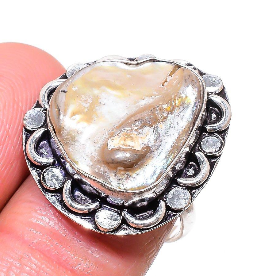 Жемчуг Бива Ручная работа Серебро 925 пробы Ювелирное кольцо Размер 7.5 u5E87