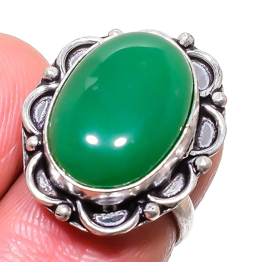 Кольцо из стерлингового серебра 925 пробы ручной работы с зеленым ониксом, размер 5 P1n82