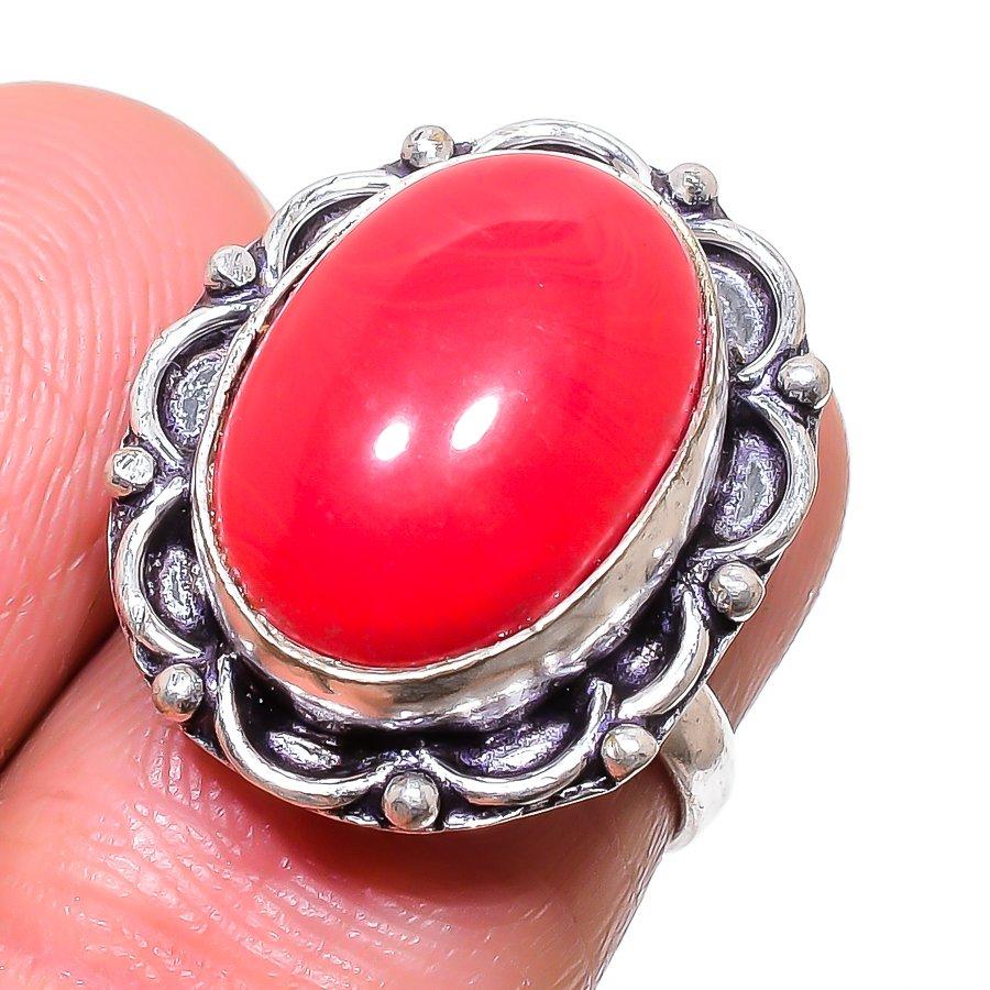 Красный Коралл Ручной Работы 925 Стерлинговое Серебро Ювелирное Кольцо Размер 6 b4r43