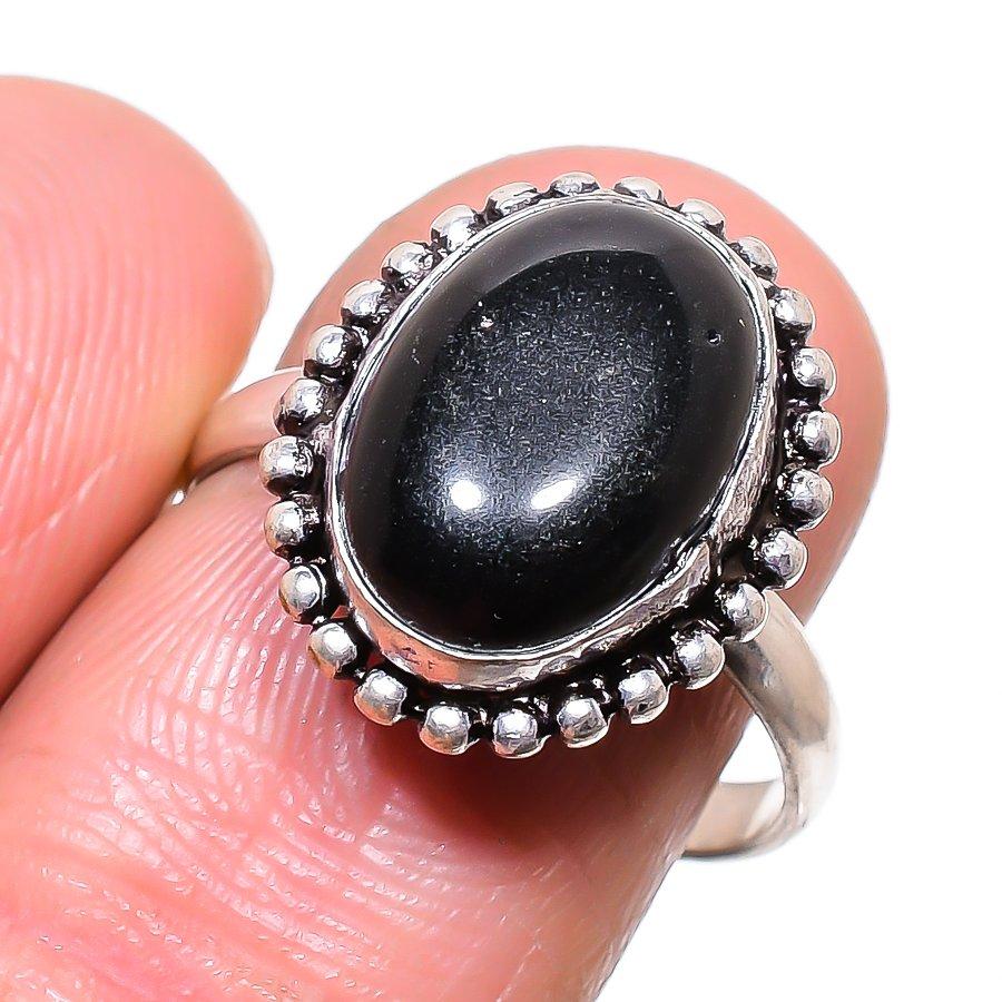 Черный оникс Ручной работы Ювелирное изделие из стерлингового серебра 925 пробы Кольцо Размер 8 w6K58