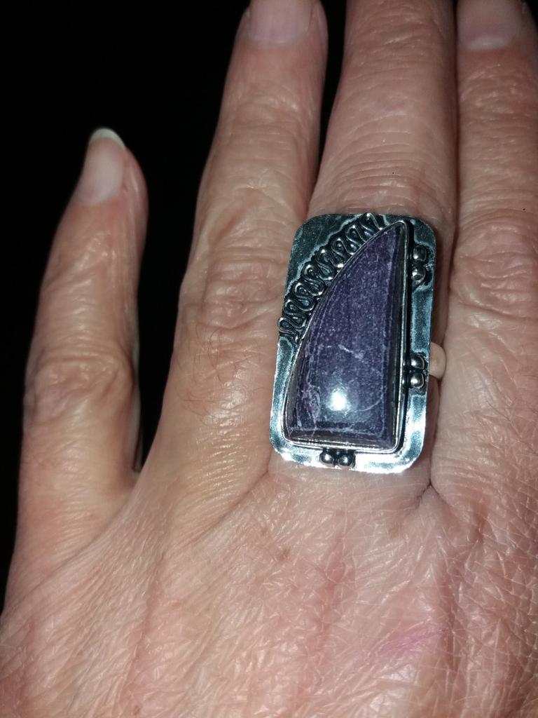Перстень ИЗУМИТЕЛЬНЫЙ!!! ОЧЕНЬ красиво и качественно сделан. Дизайн нетривиальный! Мталл в идеальном состоянии, без царапин. Пурпурит - очень мягкий камень , довольно непросто обрабатывать, а вставка в колечке хорошо обработана. За это низкий поклон мастеру, за такую профессиональную работу!Продавца рекомендую- товар пришёл тщательно упакованный в многослойную пупырку.СПАСИБО ОГРОМНОЕ!!!