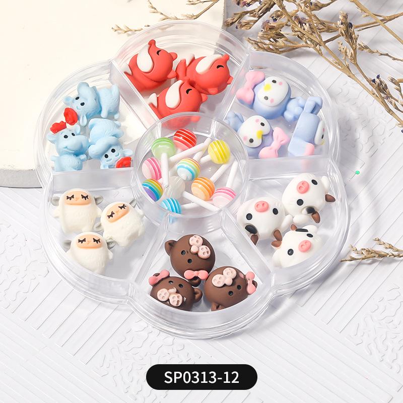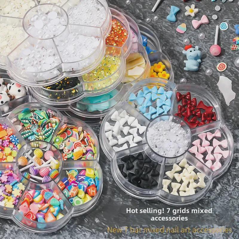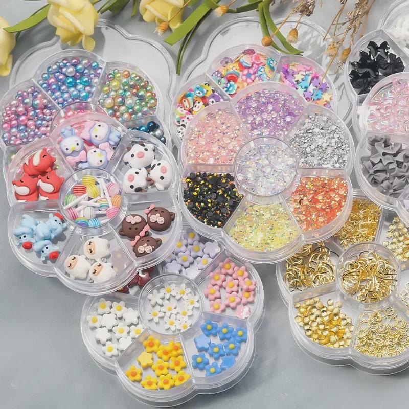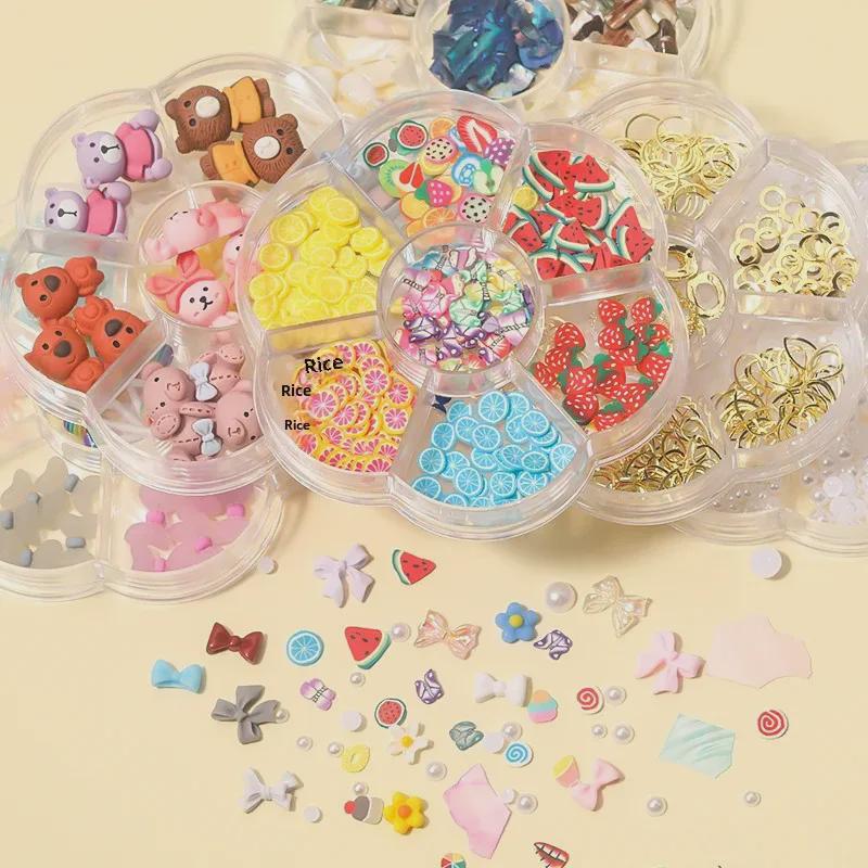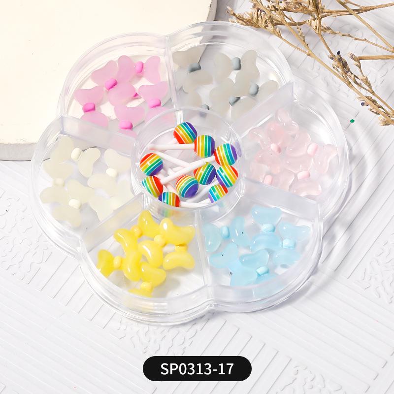 Набор для ногтей: Декор из стразов в виде банта, медведя, бабочки и жемчуга