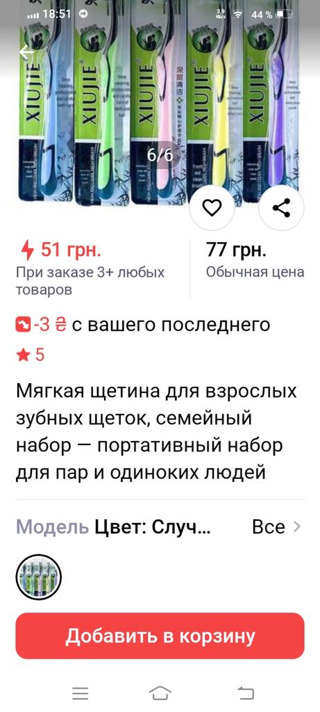 В описании написано,что это набор.И при выборе отмечается набор из 5 штук.А прислали одну.Зачем вводить в заблуждение покупателей? Сама щётка хорошая. Через службу поддержки вернули 50% стоимости!