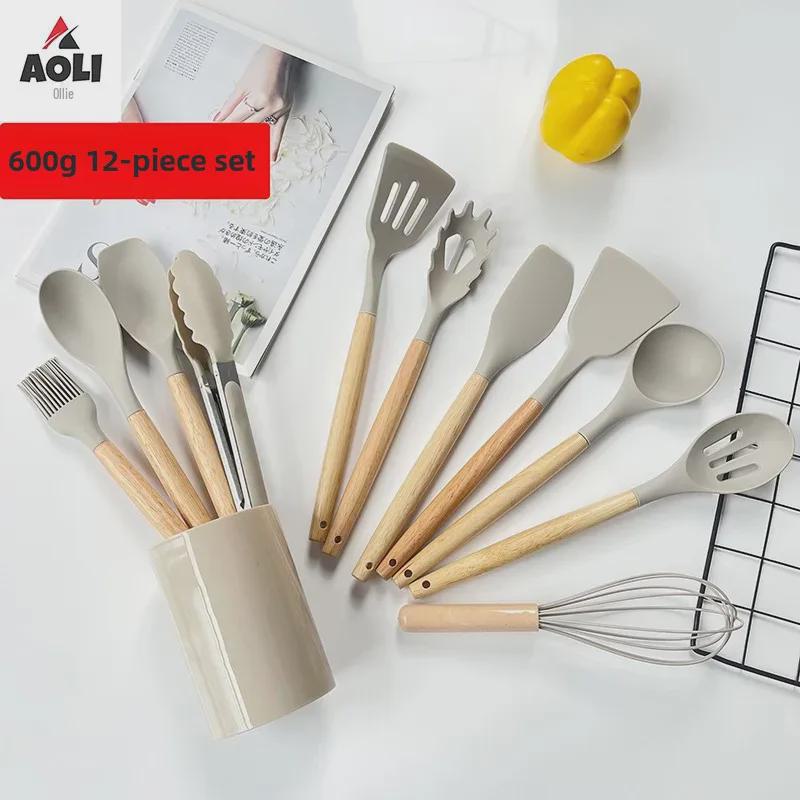 Набор из 12 кухонных принадлежностей из силикона с деревянными ручками - антипригарные, термостойкие лопатки и ложки для супа — купить товар онлайн с бесплатной доставкой по всему миру!