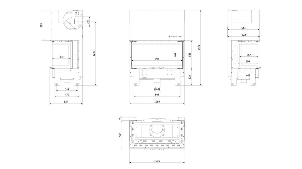 Система открывания двойной двери - подъемная (Гильотина) и боковое отверстие. Подъемная дверца облегчает загрузку дров, а механизм открывания боковой дверцы позволяет очищать стекло.