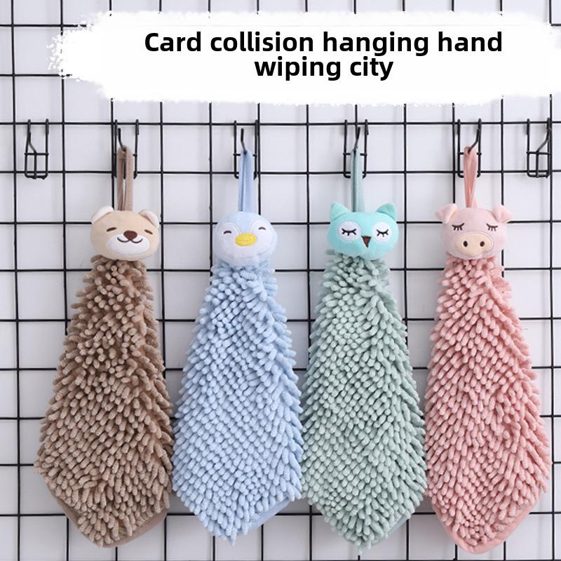Очаровательное мультяшное животное, синель, подвесное полотенце для рук для кухни или ванной комнаты