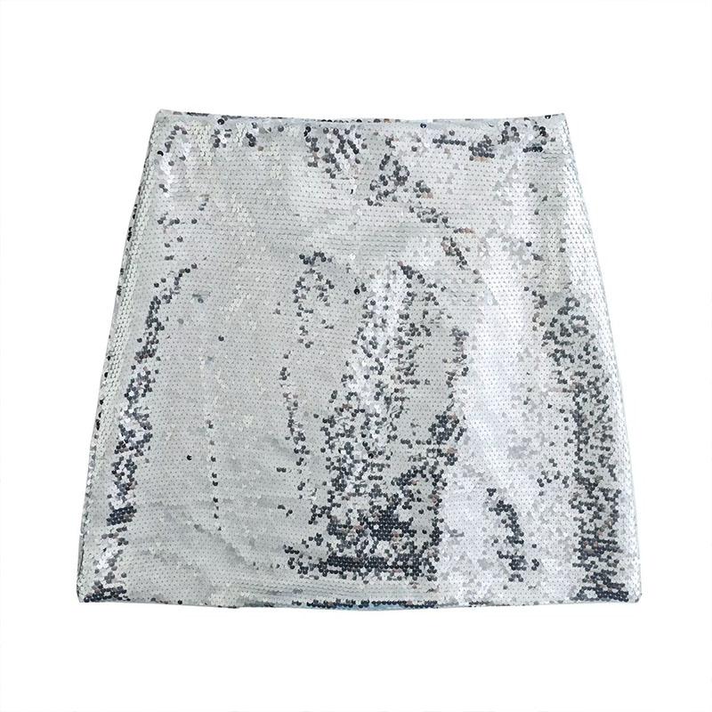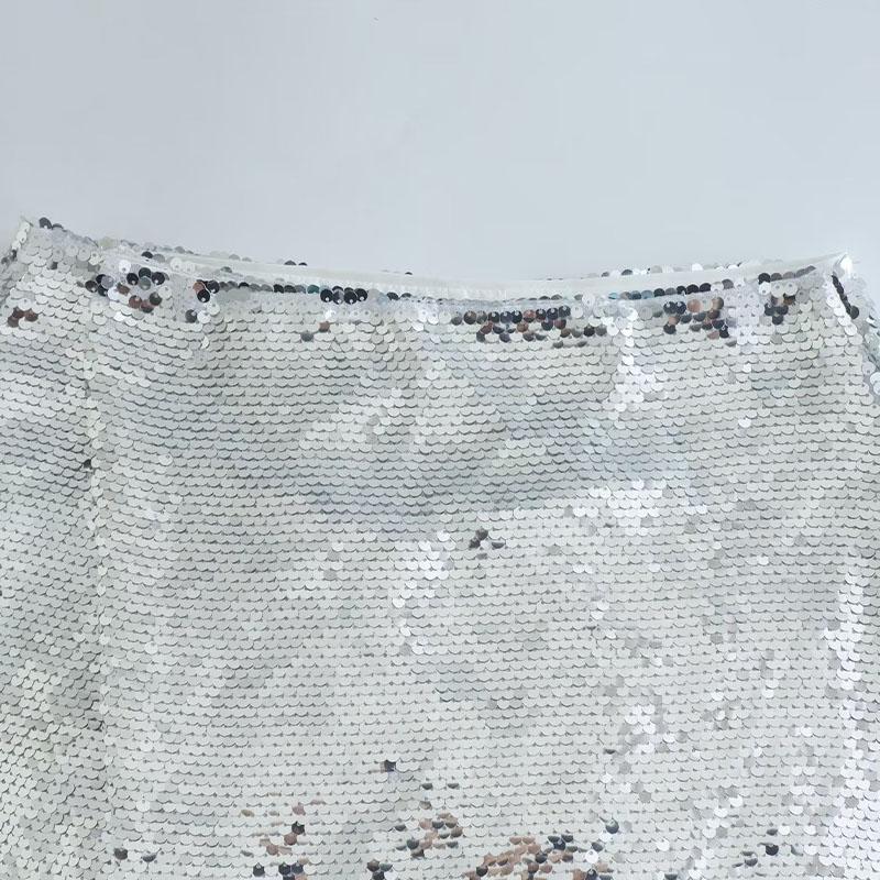Женская весенняя мода серебряная мини-юбка с высокой талией и разрезом по бокам женские юбки Mujer