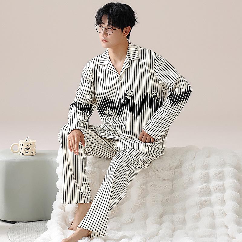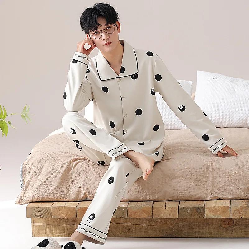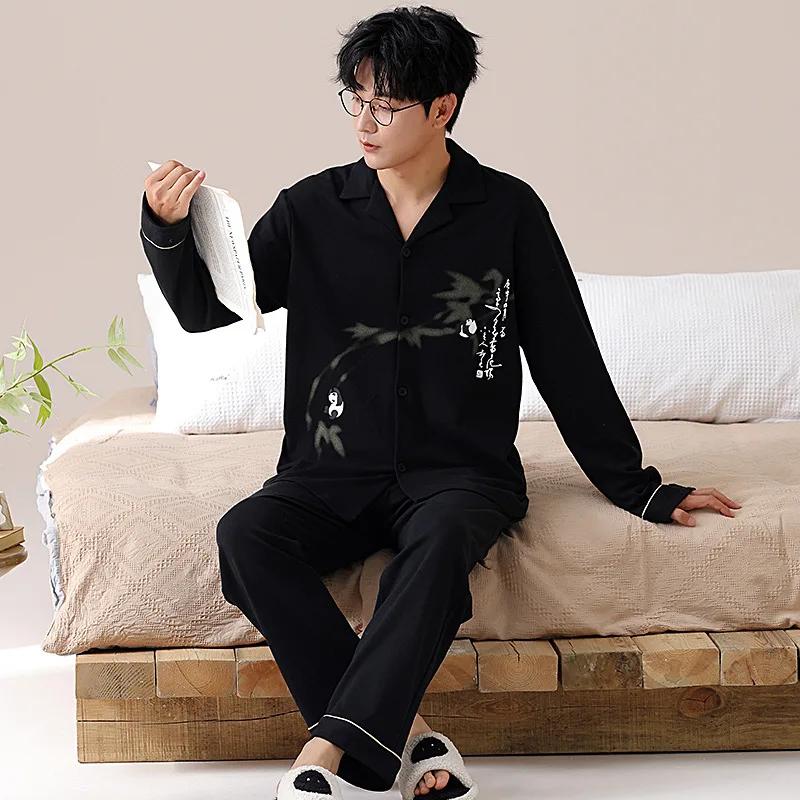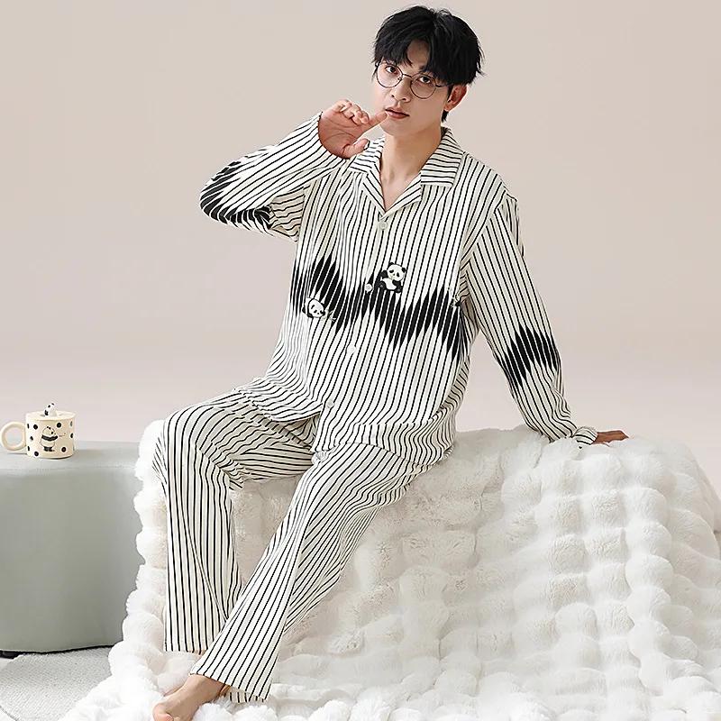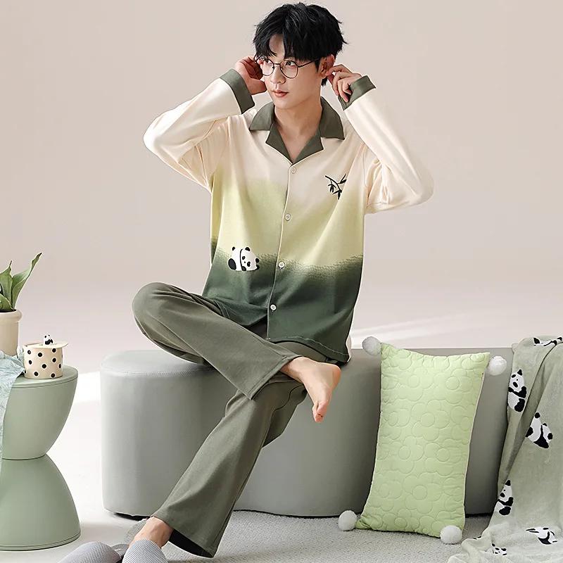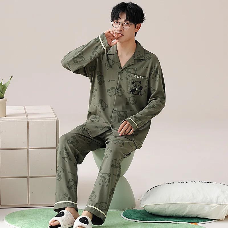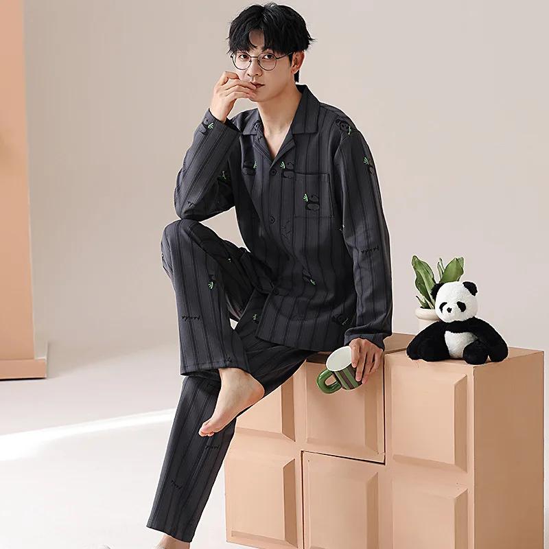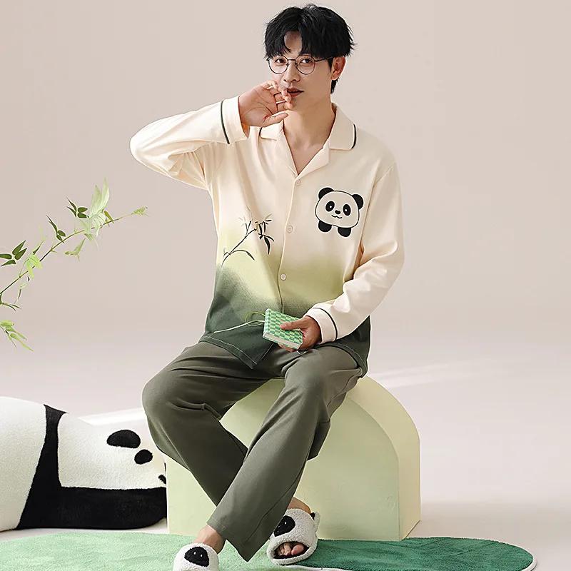 Модные мужские пижамные комплекты весна осень высококачественный пижамный костюм 2 шт панда мультфильм пижамы мужские брюки с длинными рукавами домашняя одежда