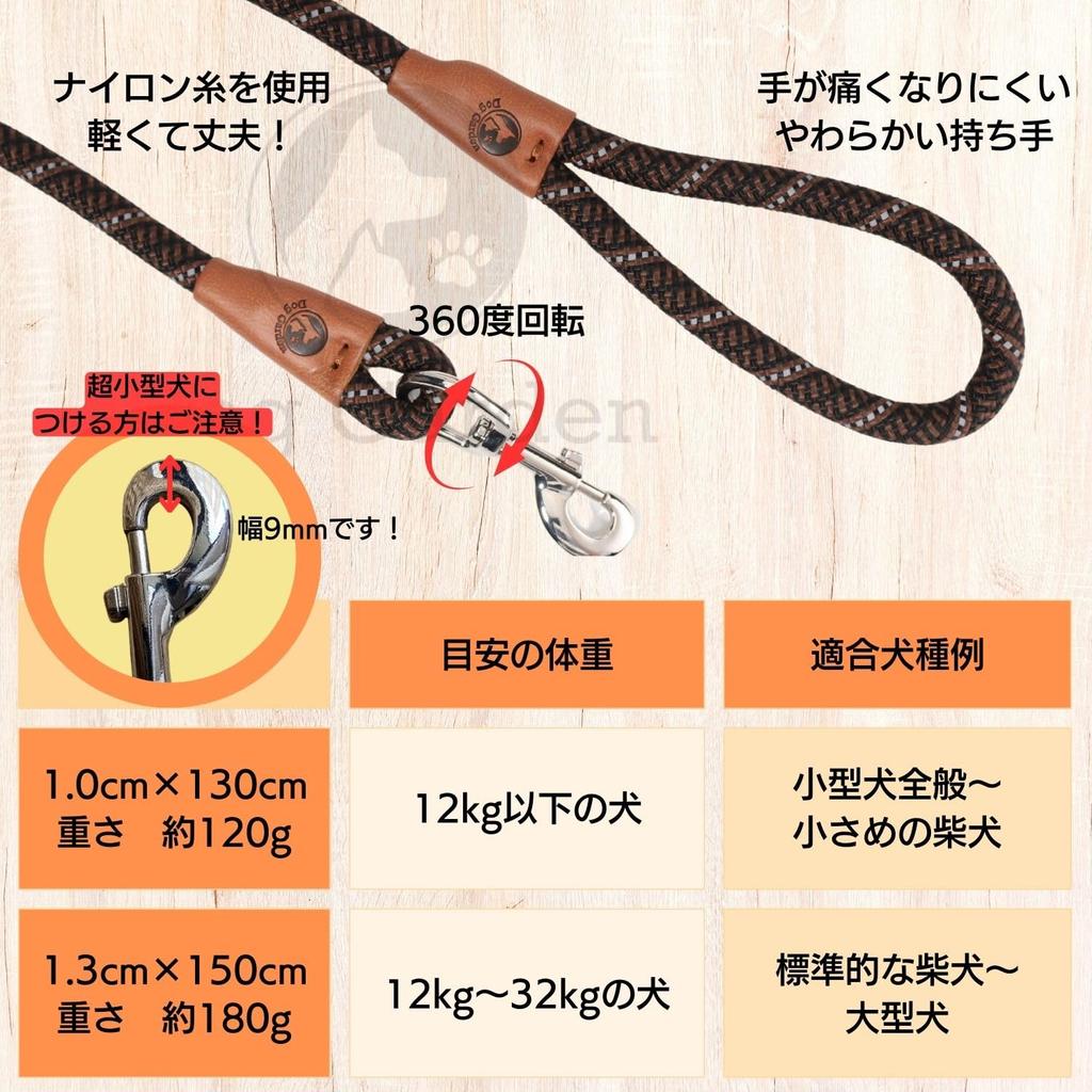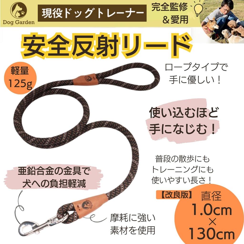 DogGarden Lightweight Leash by Dog For Small Dogs x 130cm Easy to Hold Night Reflective Rope Training [Supervised Trainer] 1.0cm (Brown)