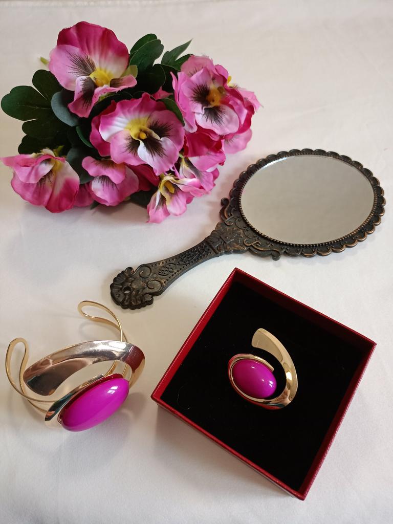 А сегодня 1 июня у меня юбилей, мне исполнилось 70 лет! Аааа! И делаю обзор на красоту, браслет и крупное кольцо с камнем цвета фуксия. Красивый набор к уже ранее купленному набору колье с серьгами. В юбилей можно и всё надеть. А потом миксовать по две вещи к образам, будет великолепно.
