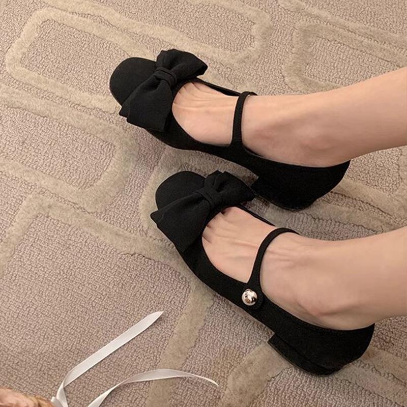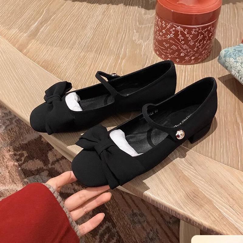 Туфли Мэри Джейн с бантом на толстом каблуке для женщин, осень/зима, французские балетки на низком каблуке для поездок на работу
