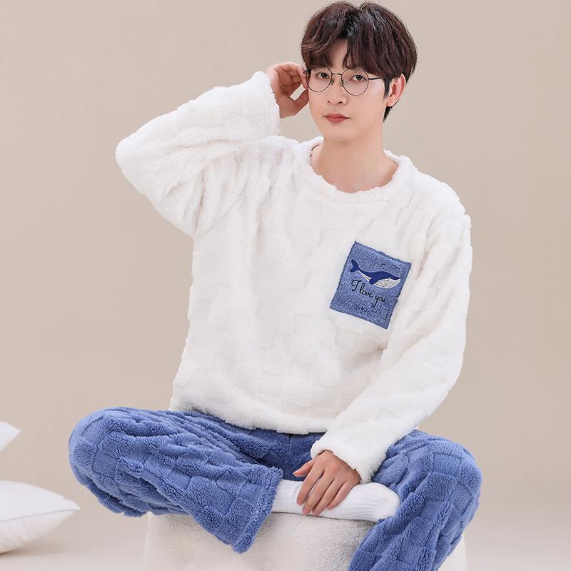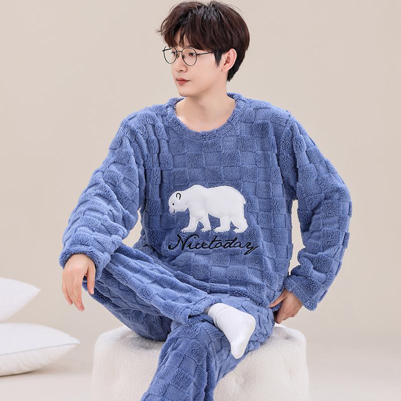 Мужская утепленная фланелевая пижама с длинными рукавами и рисунком, мужская зимняя свободная домашняя одежда для отдыха, свободная одежда для мальчиков, верхняя часть