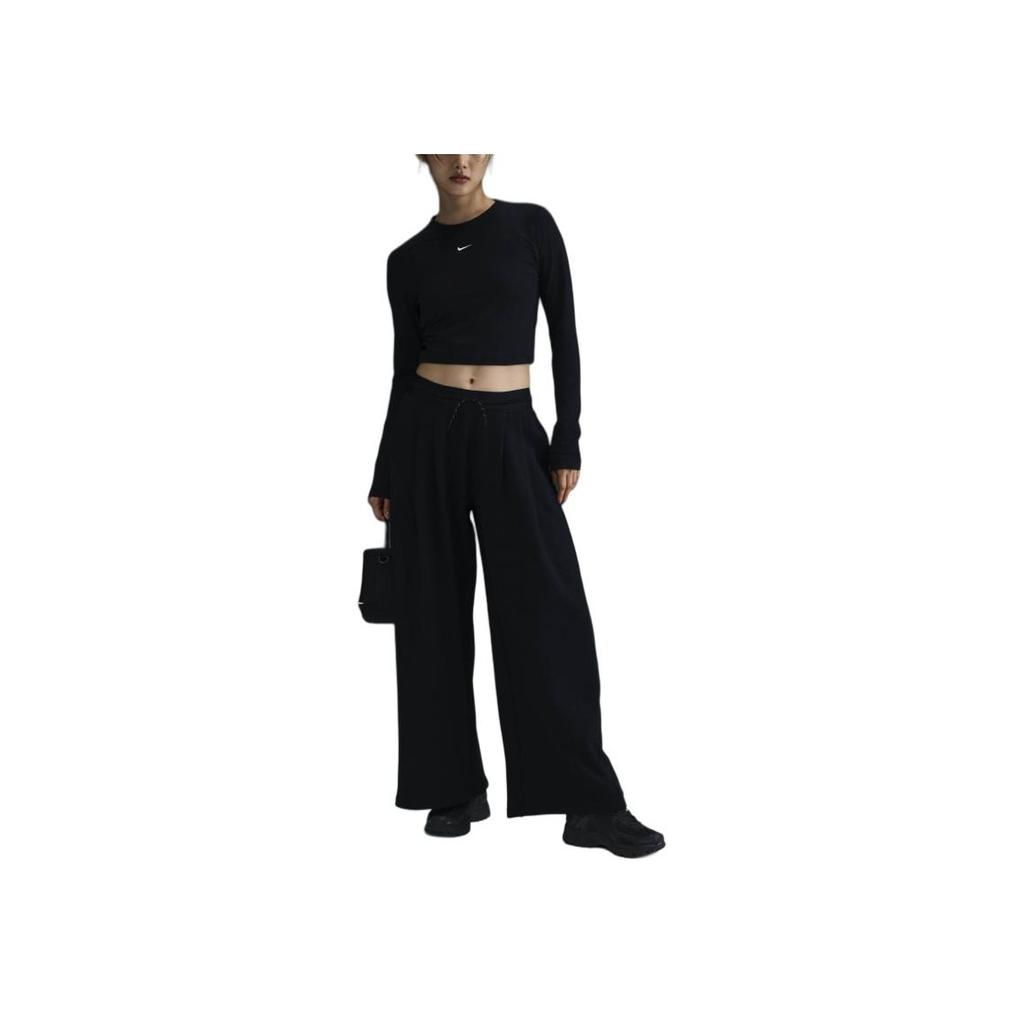 Nike Коллекция спортивной одежды, мягкие, удобные, со средней талией, свободные, широкие, повседневные брюки, женские брюки, черный, парусно-белый HF9546-010