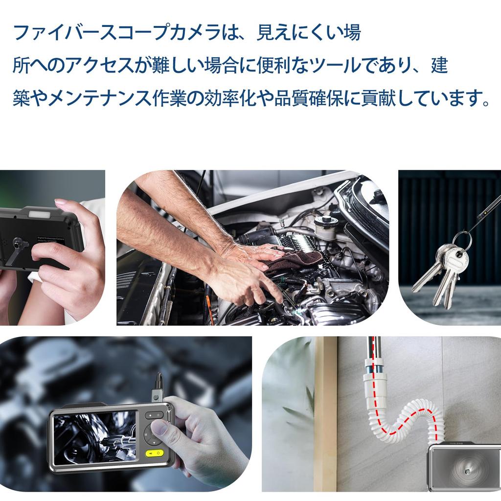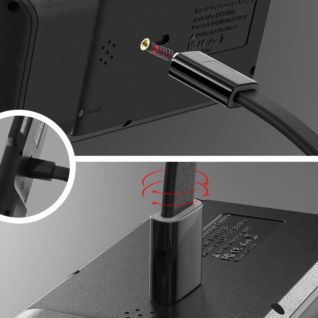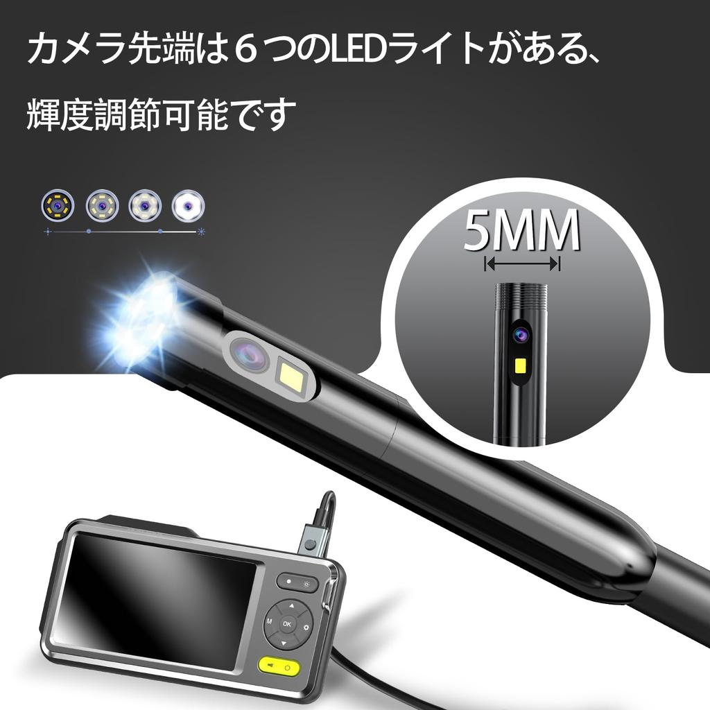 AMTORIN Fiberscope Camera, 5 Inch IPS Display, Snake Camera, Construction Endoscope Camera, Diameter 5mm, Length 10m, Dual Fiberscope, Endoscope with