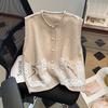 Милый стиль кружевной кружевной карман вязаный жилет весна новый уменьшающий возраст нишевый индивидуальный универсальный топ для женщин