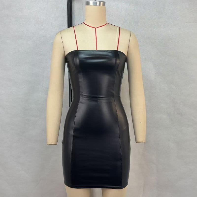 Летнее сексуальное черное кожаное платье без бретелек, сексуальное клубное платье для женщин, элегантное модное облегающее платье-карандаш для женщин, для ночных клубов, вечеринок, однотонные короткие платья 26317
