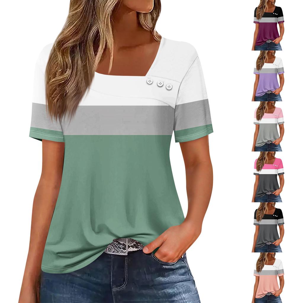 Женская повседневная футболка с асимметричным вырезом и коротким рукавом, декоративная пуговица — купить товар онлайн с бесплатной доставкой до всему миру!
