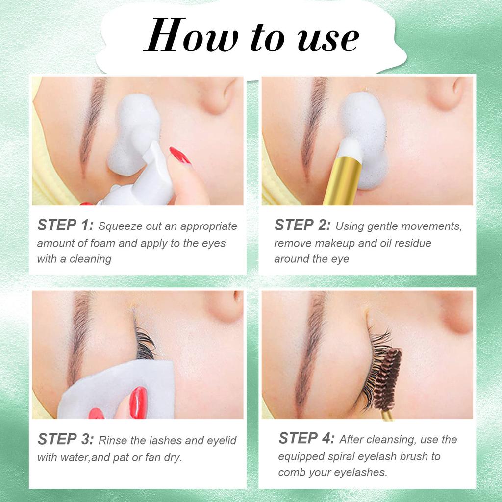 1.Простой в использовании:Хорошо встряхнуть перед использованием. Мойте руки.. Удалить для использования. Нанесите необходимое количество шампуня на предоставленную очищающую щеточку, затем аккуратно протрите веко, пока весь макияж, грязь, жир и мусор не будут удалены.. Промойте ресницы и веки чистой водой, затем промойте другой глаз.