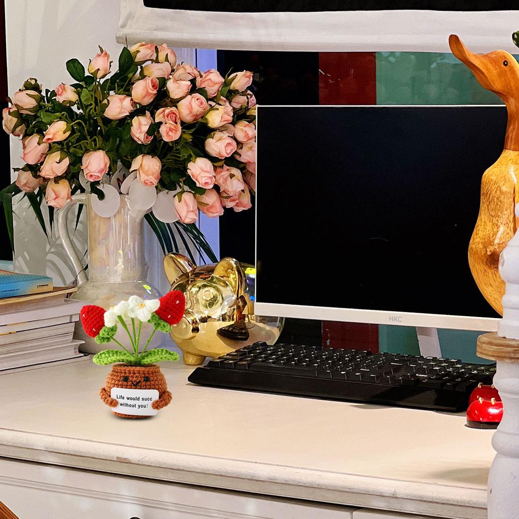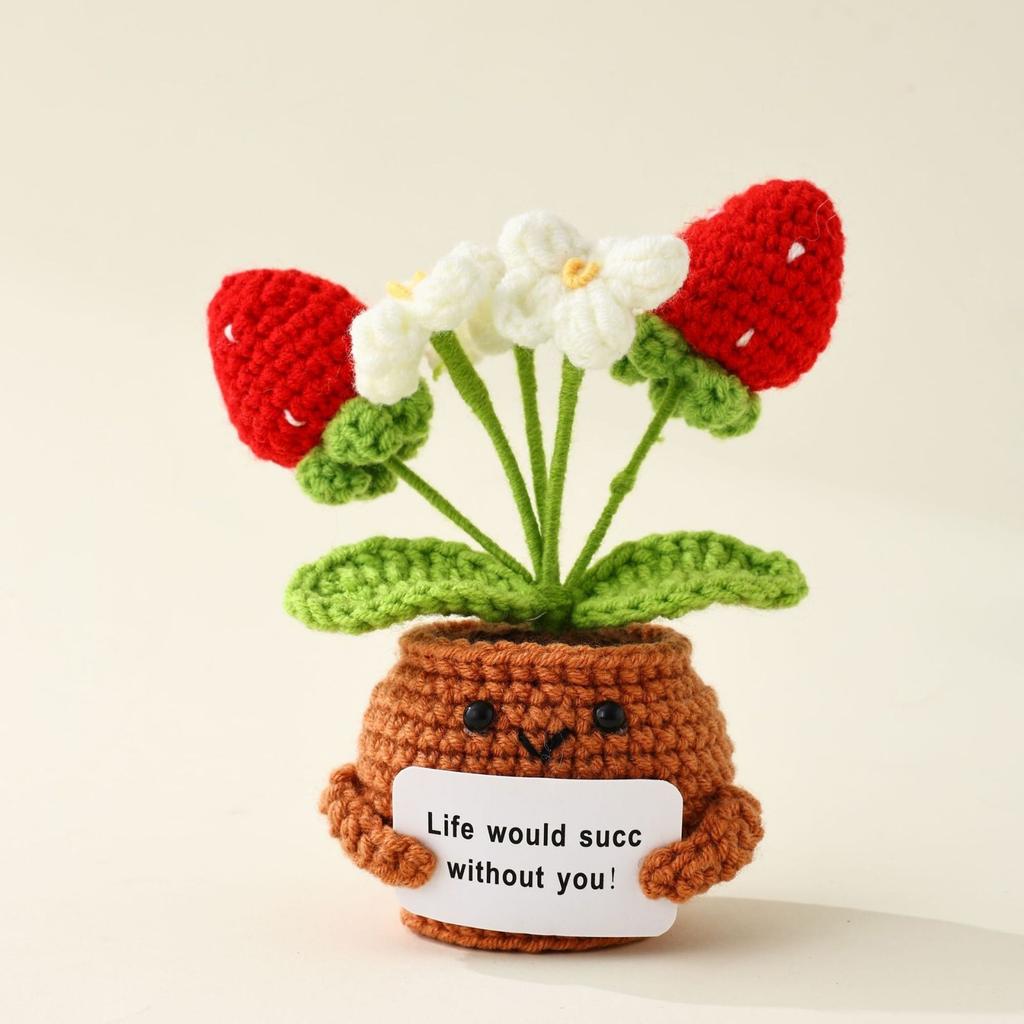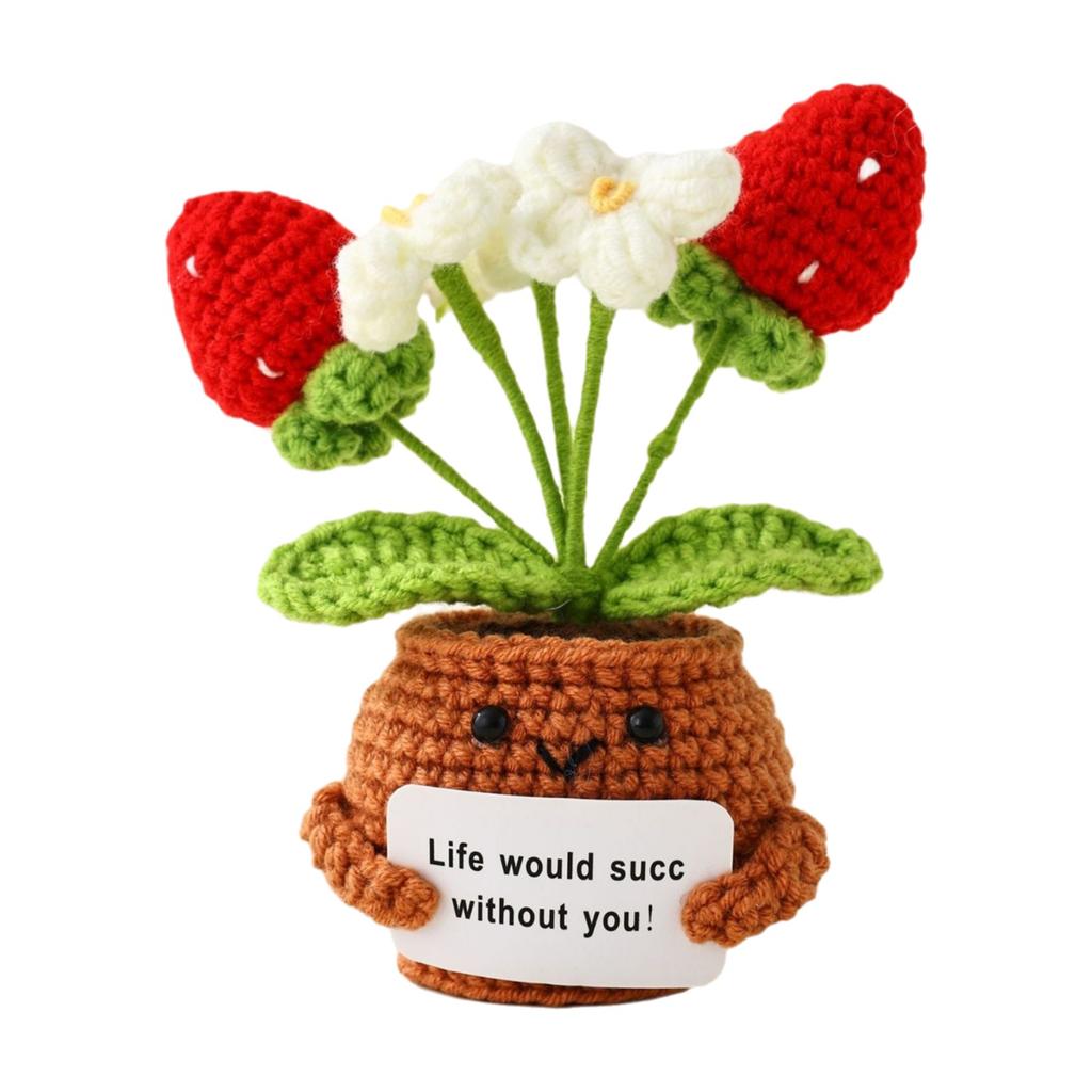Вязаное крючком растение с двумя концами, искусственный цветок клубники, горшечное растение, креативное подарочное украшение, 1 шт.