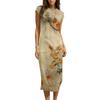 Женские платья миди с коротким рукавом и воротником-хомут, весна-лето, вечернее платье