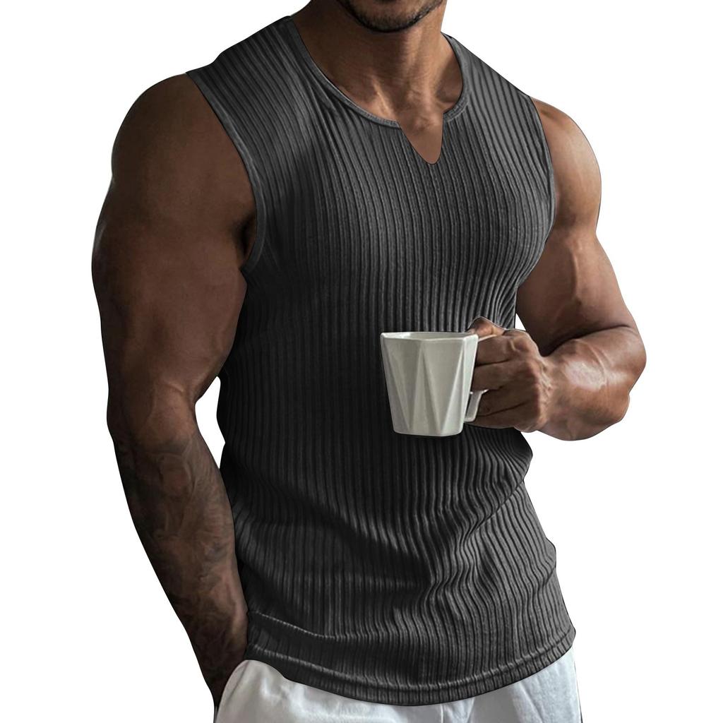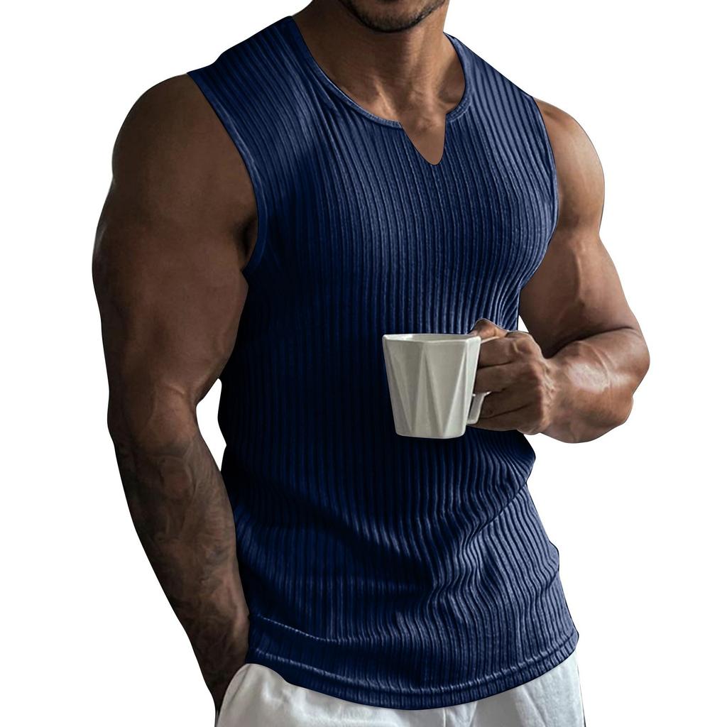 Мужской летний жилет с вертикальными полосками, однотонный, с V-образным вырезом и широкими плечами