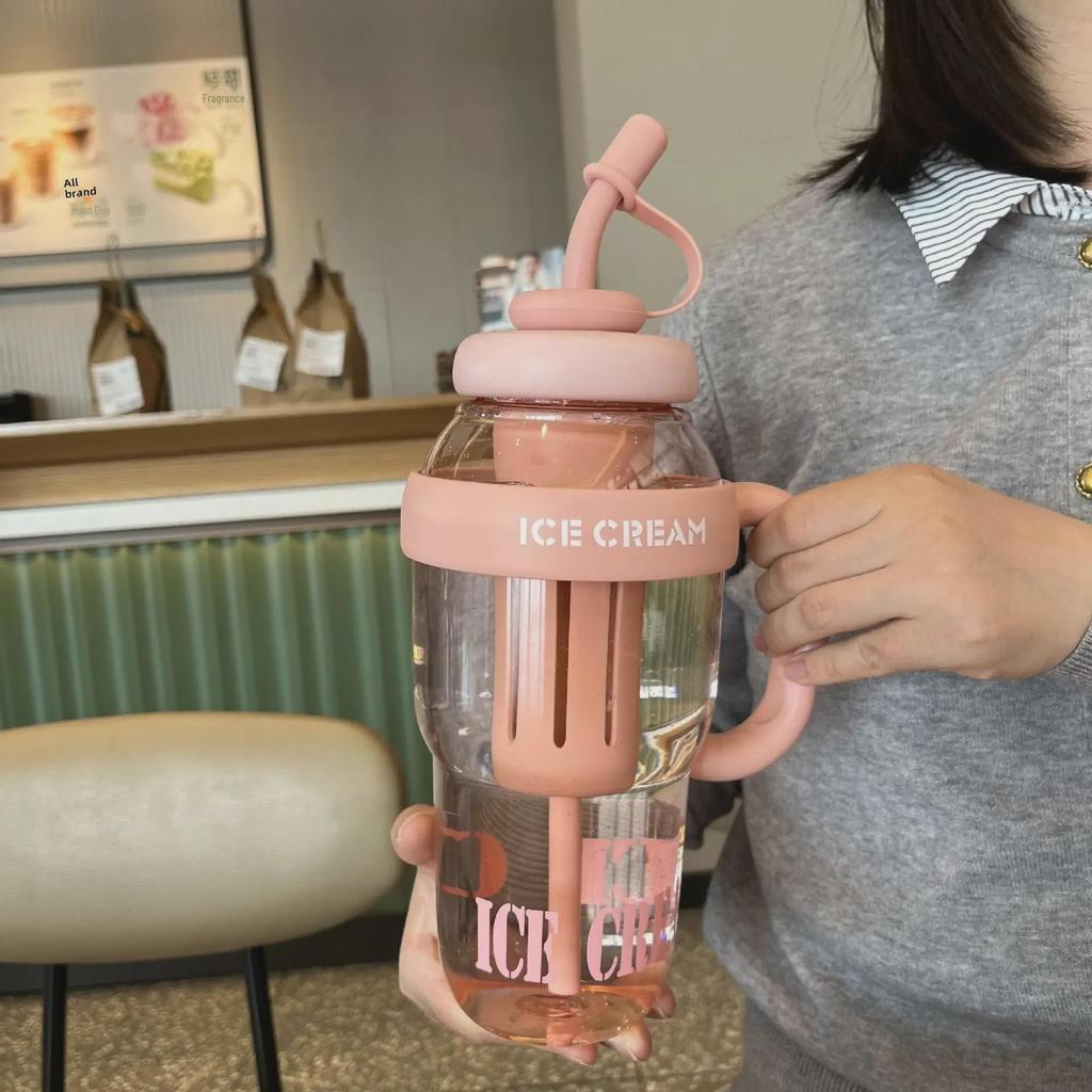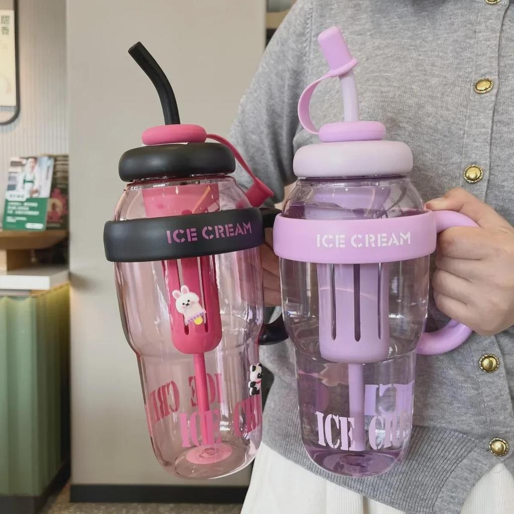 2025 Lucky Belly Большая емкость с ручкой: Летний открытый стаканчик Ice Tyrant из пластиковой соломы