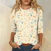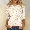 Топы с рукавами 3/4 для женщин, футболка, повседневные топы с принтом, футболка, пуловер с круглым вырезом, блузка