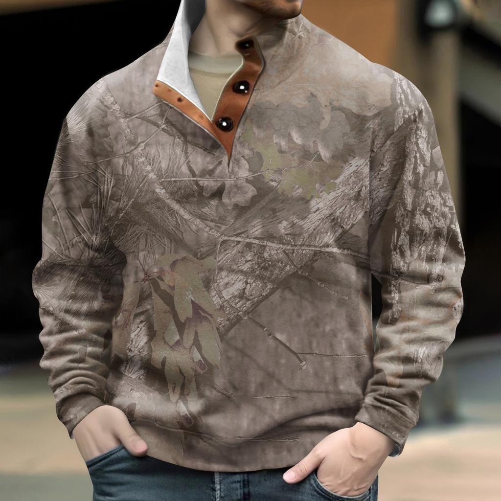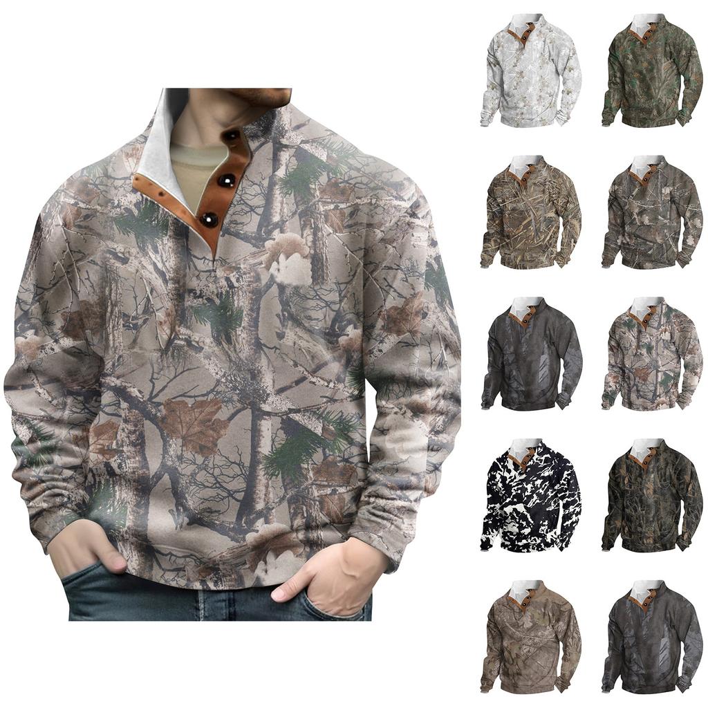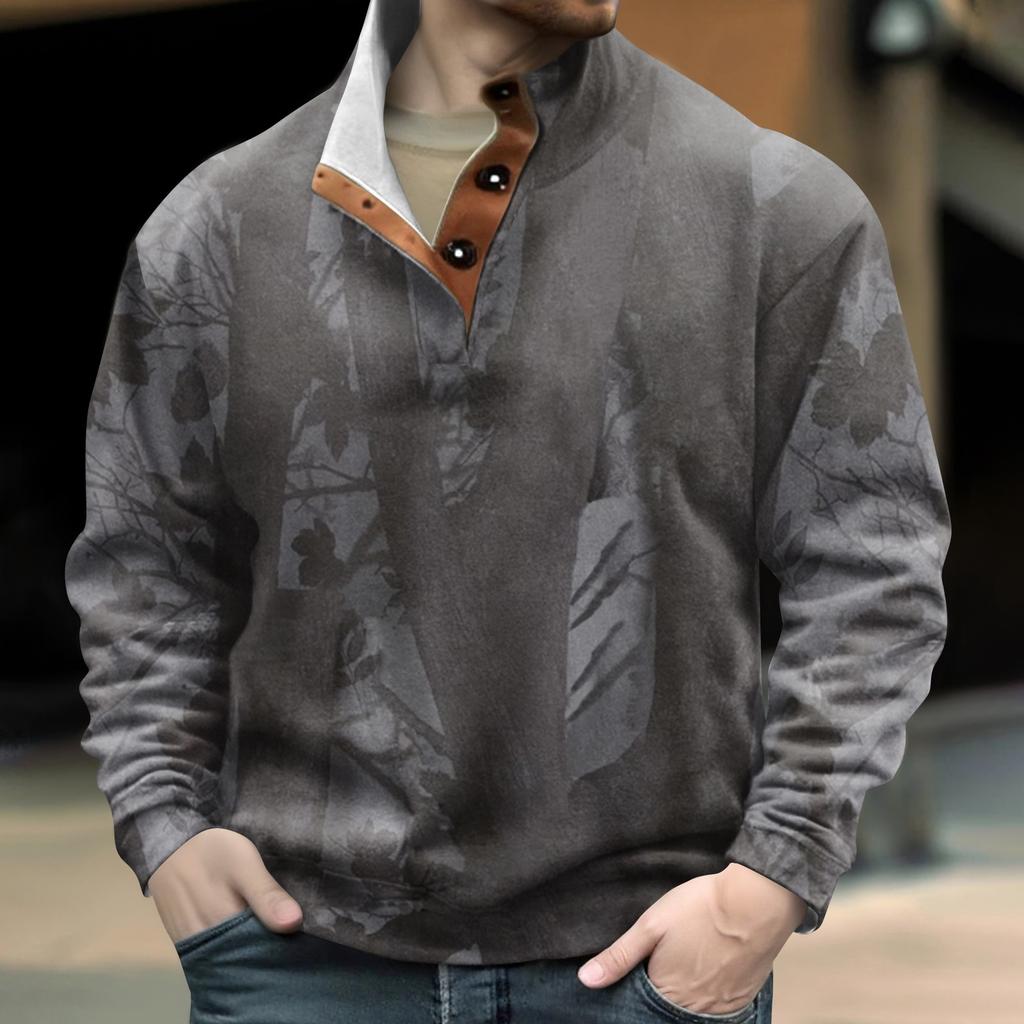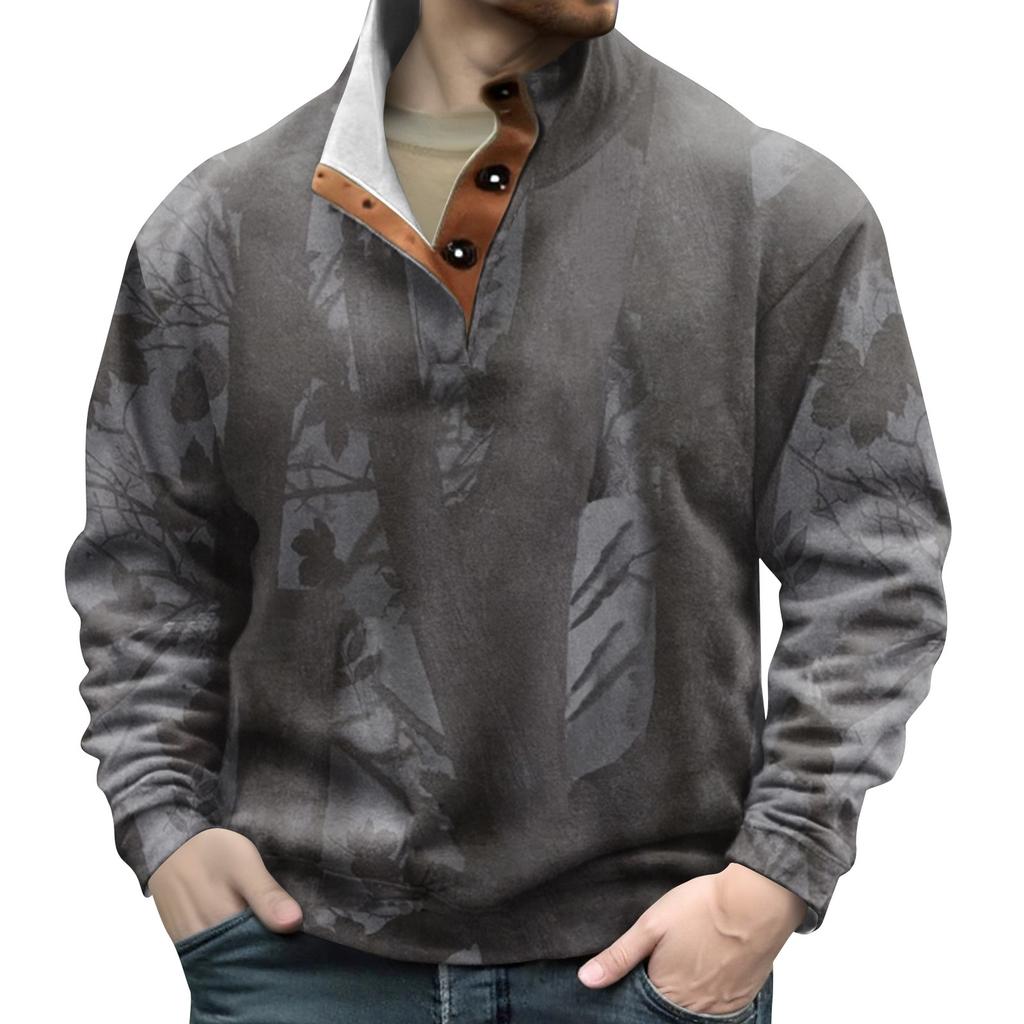 Мужская модная повседневная свободная толстовка-пуловер с пряжками и длинными рукавами на 3 пуговицах