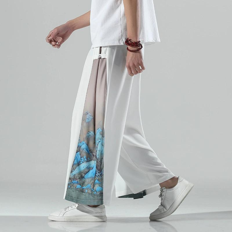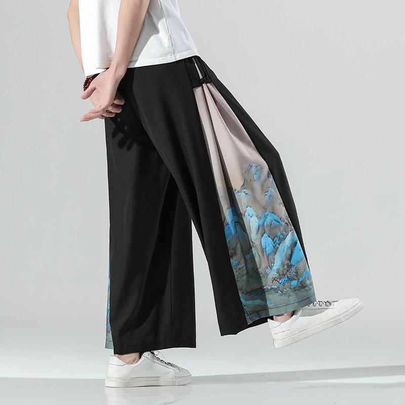 Широкие брюки в национальном китайском стиле, подходящие по цвету, мужские летние тонкие повседневные широкие брюки, брюки больших размеров