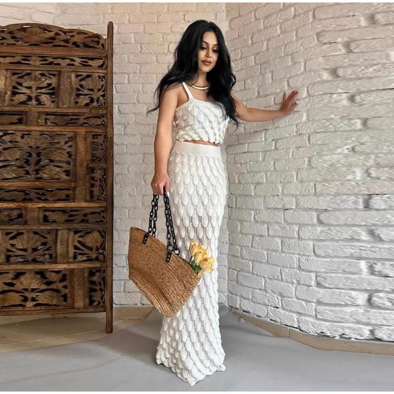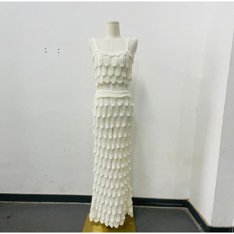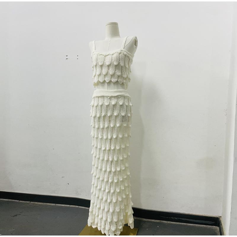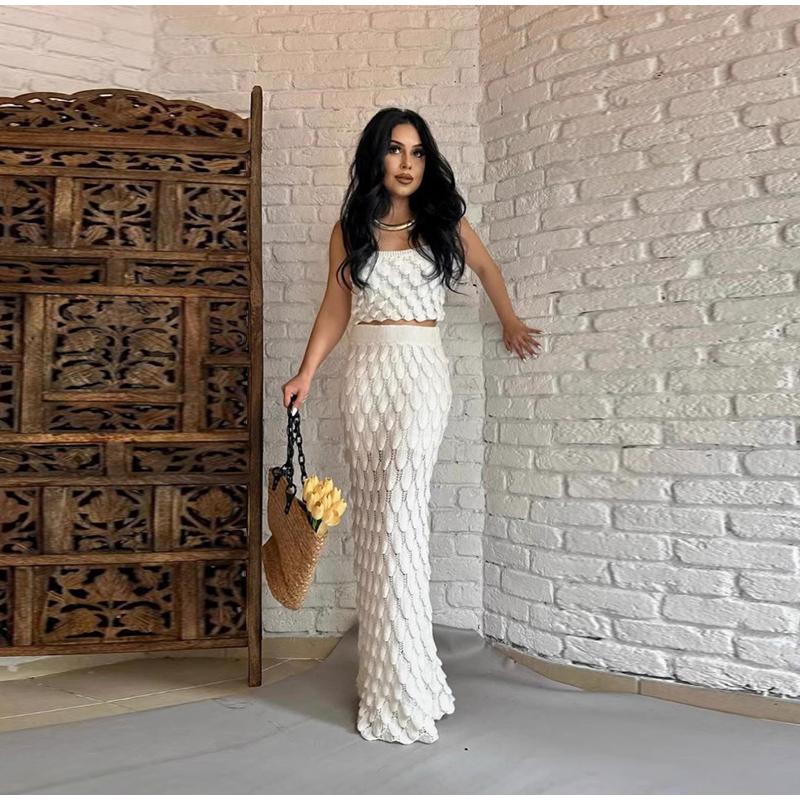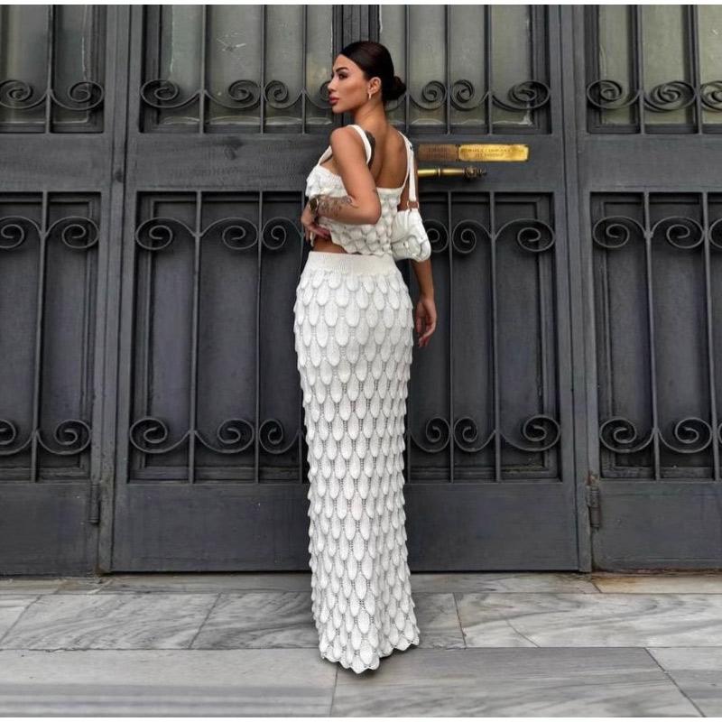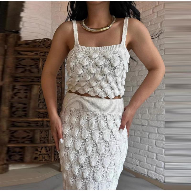 Однотонные укороченные топы с оборками, подходящие к длинным юбкам, женские повседневные облегающие трикотажные комплекты из 2 предметов для улицы 2025 года, весна-лето, женские привлекательные костюмы