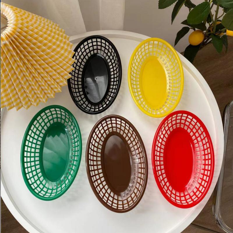 1 шт. корзина для хранения в стиле ретро, пластиковая цветная настольная корзина для хранения, уникальная полая корзина для закусок