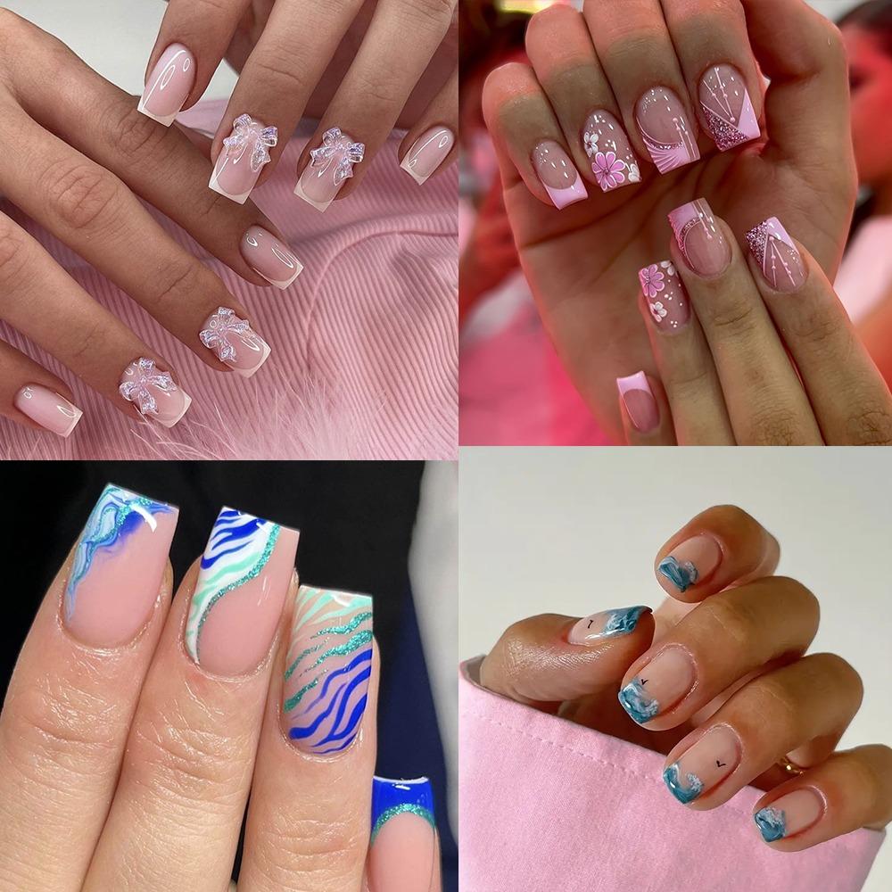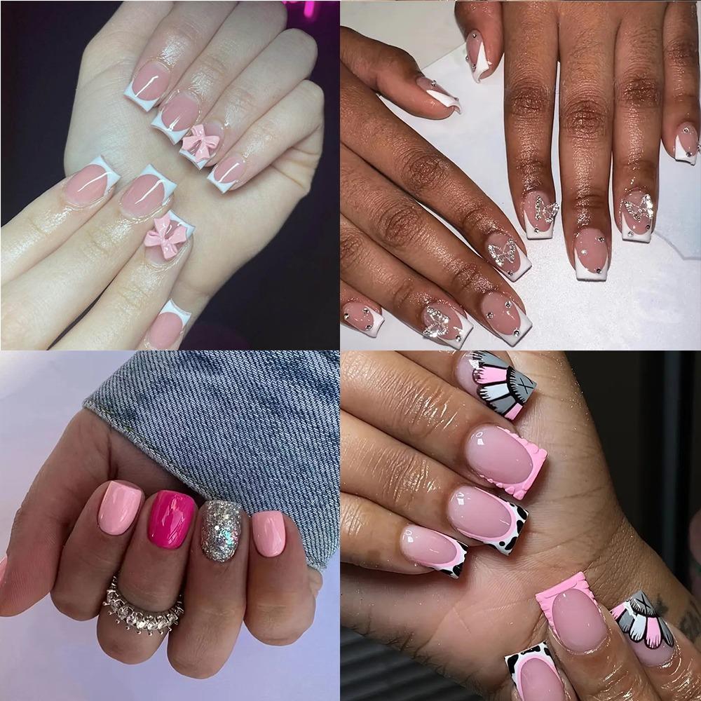 Носимый маникюр, французские накладные ногти, квадратная головка, пресс для ногтей, модные накладные ногти для девочек