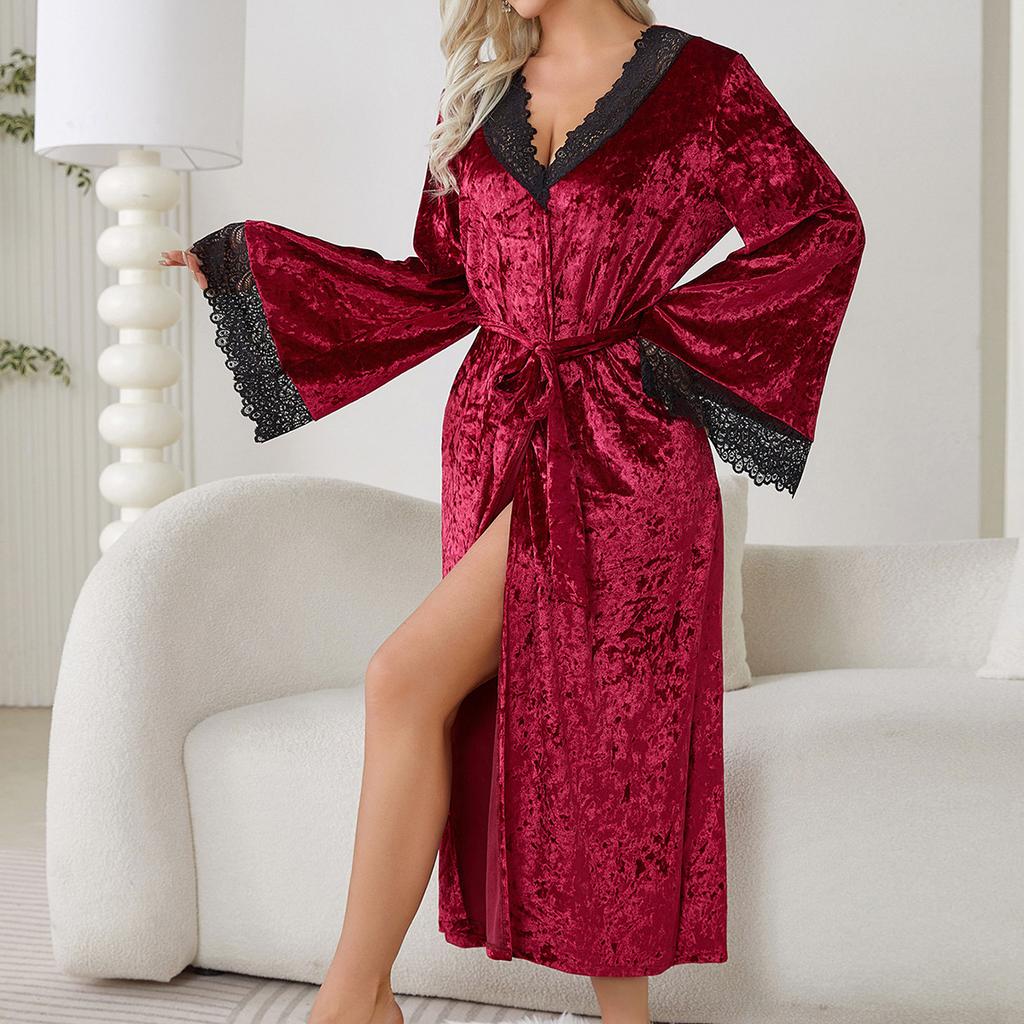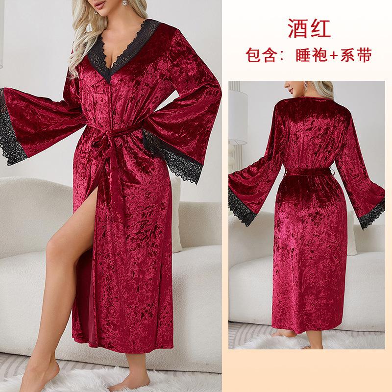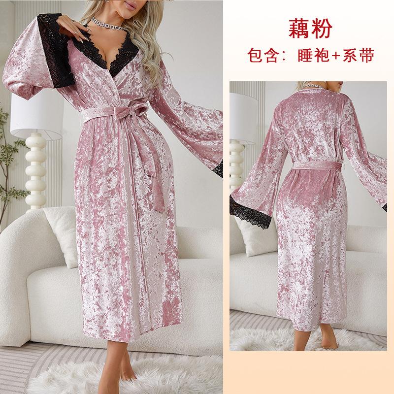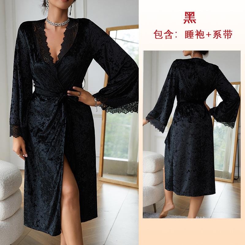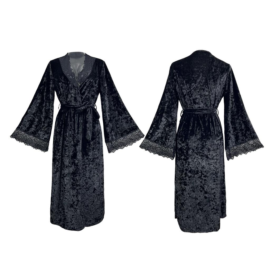 Длинный халат сексуальный кружевной легкий роскошный бархатный ночной халат с длинными рукавами