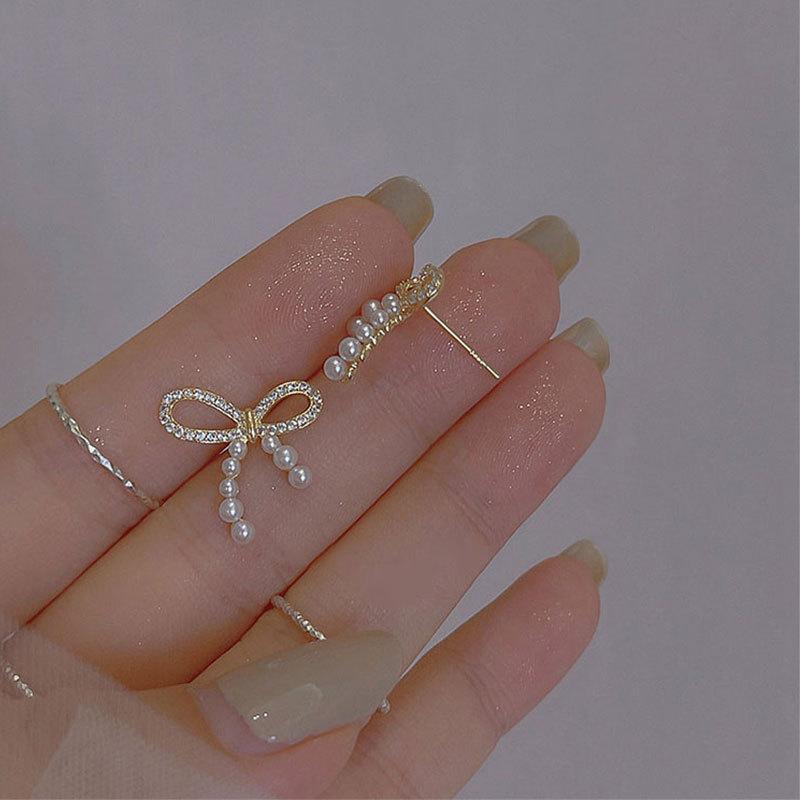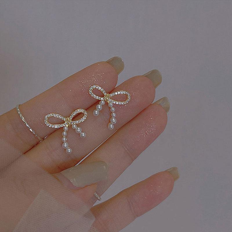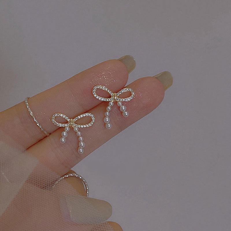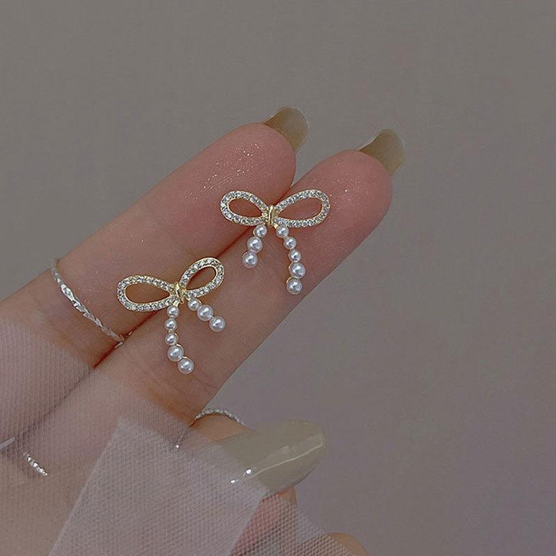 Серьги-бантики с летним жемчугом, новые серьги-гвоздики в нишевом дизайне