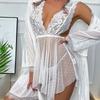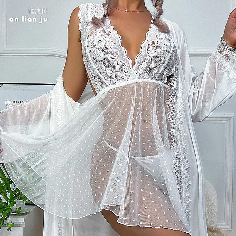 Кружевная пижама женская ажурная спинка халат перспектива горошек сетчатая юбка на подтяжках банный халат комплект