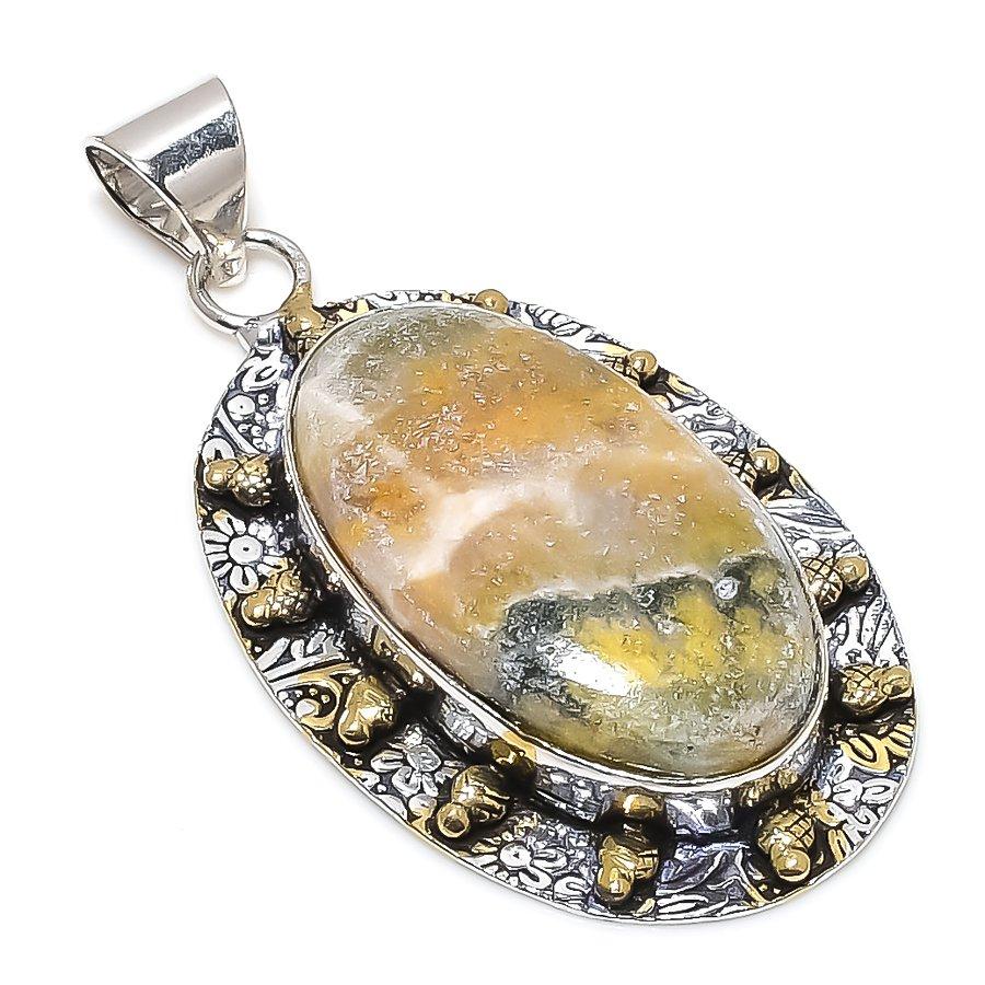 Шмель Яшма 925 Стерлинговое Серебро Подарок Двухцветная Подвеска 2,36"
