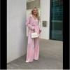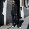 Весенне-летний женский повседневный комплект из двух предметов, плиссированный воротник, свободные длинные рукава, подвеска, широкие брюки