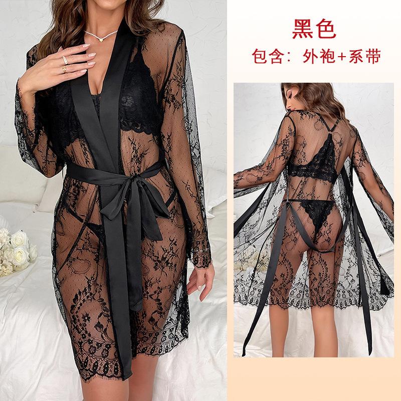 Сексуальная сетчатая ночная рубашка, кружевная кружевная соблазнительная перспектива пижамы женская верхняя одежда