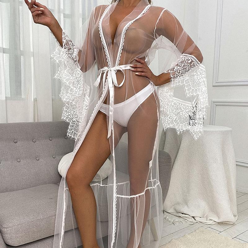 Сексуальный Сексуальный Глубокий V Кружева Сетка Перспектива Соблазнение Горячий Женский Халат Униформа Комплект