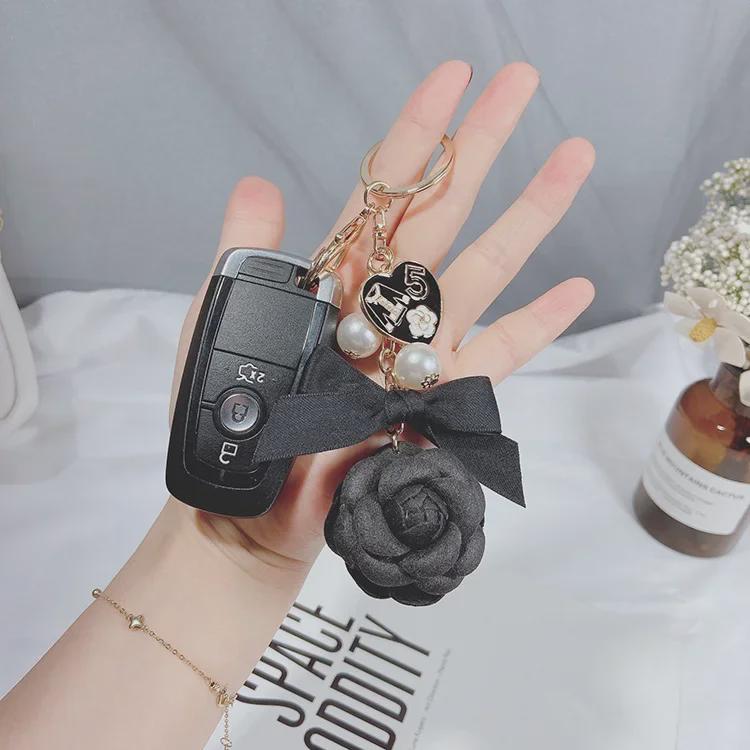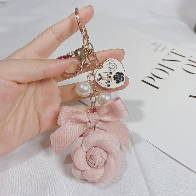 Двусторонний брелок с жемчугом Камелия - корейская модная подвеска на сумку