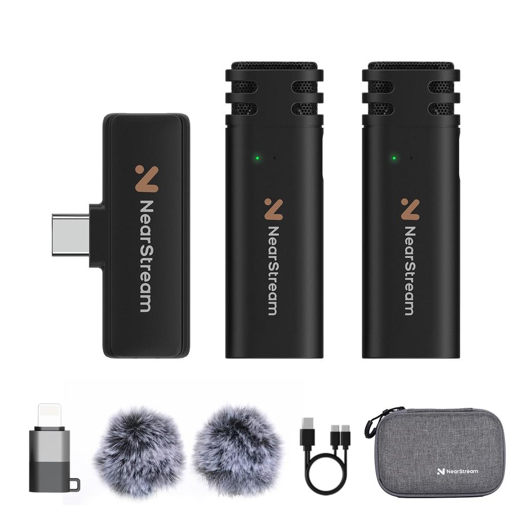 «Автоматическое сопряжение/суперминиатюрный беспроводной микрофон» NearStream AWM10T состоит из одного приемника и двух передатчиков и может быть сопряжен автоматически при включении питания, что упрощает использование для новичков, поскольку не требует дополнительных действий.. Уникальная конструкция с зажимом позволяет легко прикрепить его к одежде и идеально подходит для различных приложений по созданию контента.. Это беспроводной штыревой микрофон, который раскрывает творческий потенциал создателей, например, при съемке видео во время разговора, движения обеих рук, ходьбы или перемещения.